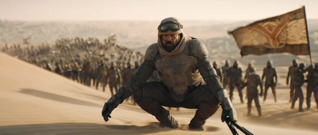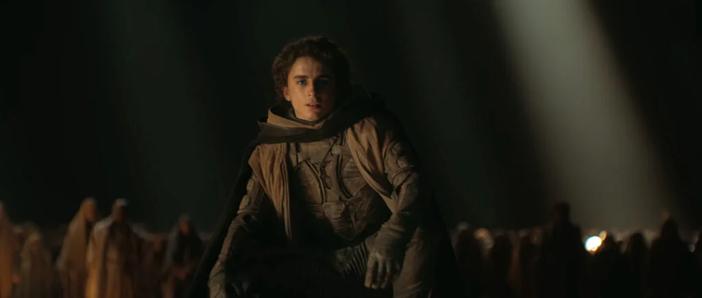 《沙丘》采用了混合方法,将模拟和数字方法相结合,以实现其接地气但不怀旧的外观。该胶片以数字方式拍摄,然后使用 Vision3 胶片打印到 35 毫米负片上,该胶片不是典型的 5219 胶片。这一过程造就了影片柔和但不饱和的外观,这是其视觉形象的一个关键特征。