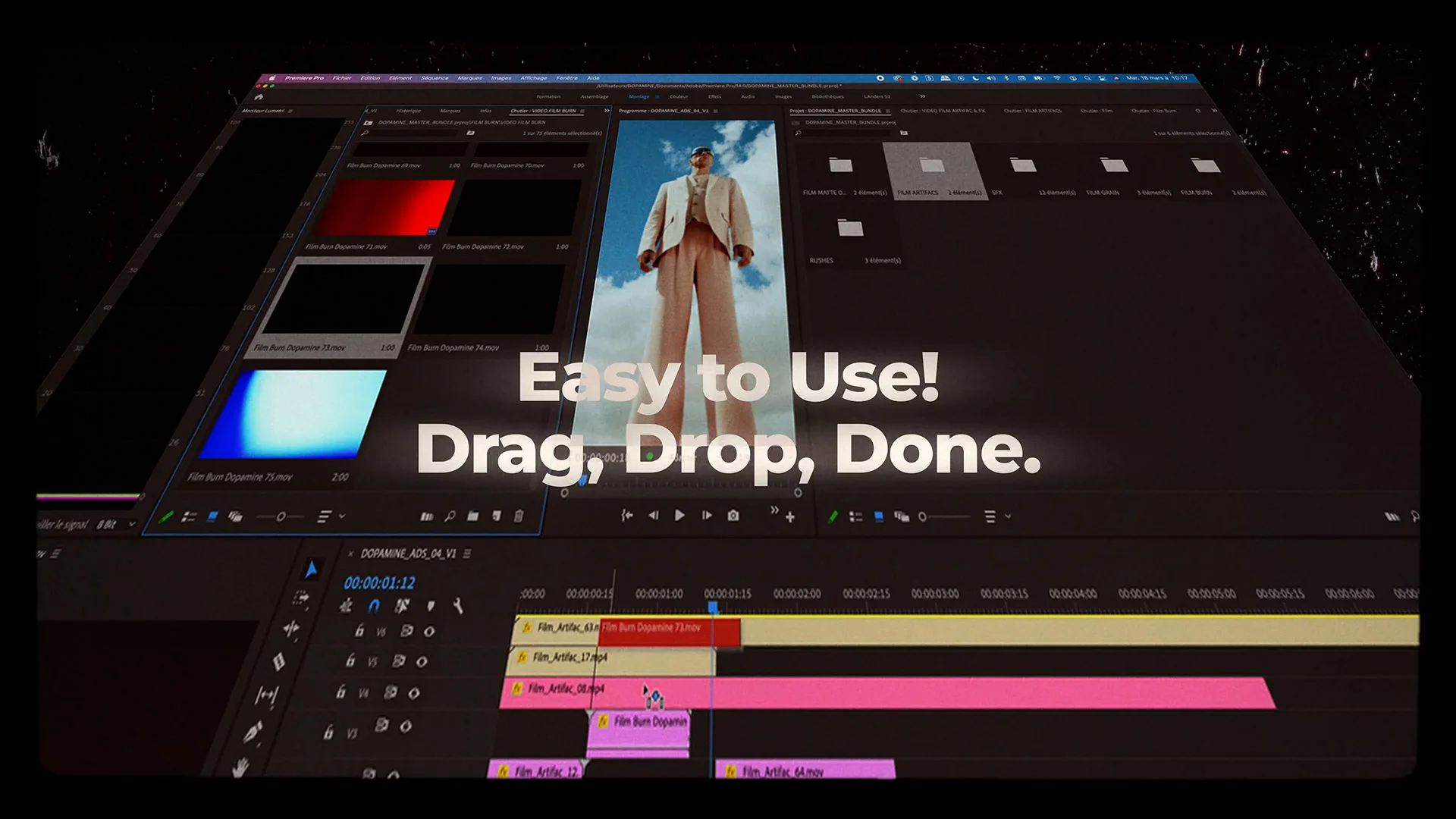 - 胶片伪影 – 逼真的胶片破损、灰尘、斑点等效果,带来自然流畅的视觉效果。