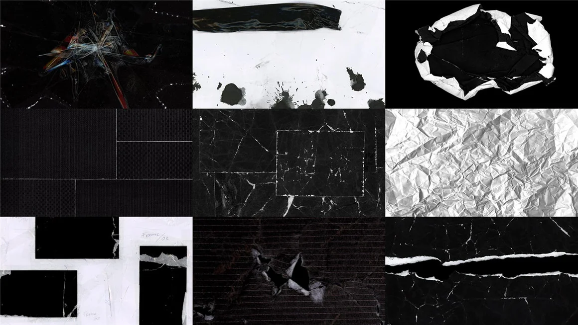 - 过渡、拼贴、撕裂、纹理、叠加、设计元素